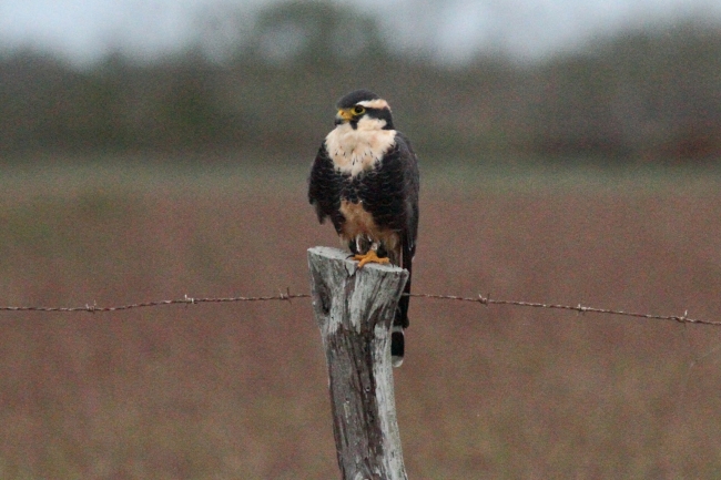 Northern Aplomado Falcon sitting on a fence post