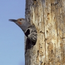 A Northern flicker pokes its head from its nesting area before taking flight in the Deschutes National Forest located in Oregon.