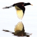 Northern Jacana wading in a marsh. These birds have been named "lily-trotters." Location: Choke Canyon State Park, Texas.