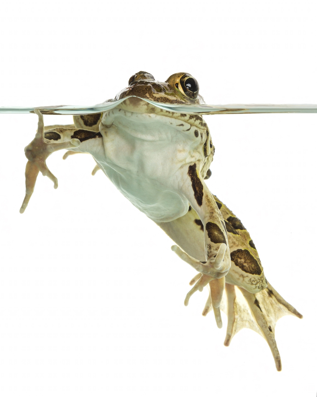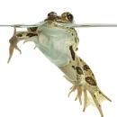 Northern leopard frog at Gavins Point National Fish Hatchery in Yukton, South Dakota. The northern leopard frog is a smooth-skinned green, brown, or sometimes yellow-green frog covered with large, oval dark spots, each surrounded by a lighter halo. This frog requires a mosaic of habitats for all of its life stages and breeds in a variety of aquatic habitats.
