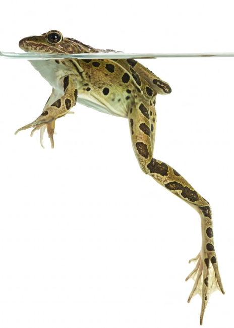 Northern leopard frog at Gavins Point National Fish Hatchery in Yukton, South Dakota. The northern leopard frog is a smooth-skinned green, brown, or sometimes yellow-green frog covered with large, oval dark spots, each surrounded by a lighter halo. This frog requires a mosaic of habitats for all of its life stages and breeds in a variety of aquatic habitats.