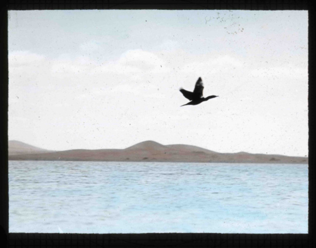 Hand painted glass slide of a Northern Pintail taken by Finley and Bohlman during a 1905 photography trip to Klamath Marsh. Finley and Bohlman's photographs would late help Klamath become a bird refuge in 1908.