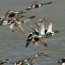 Northern Shoveler ducks take flight at Laguna Atascosa National Wildlife Refuge.