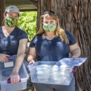 Oakland Zoo employees, Samantha Sammons, left, and Margaret Rousser, prepare the frogs for the release. Credit: Rebecca Fabbri/USFWS