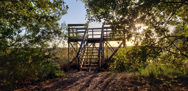 An observation platform overlooks the marsh along the Boy Scour Rd. hiking trail.