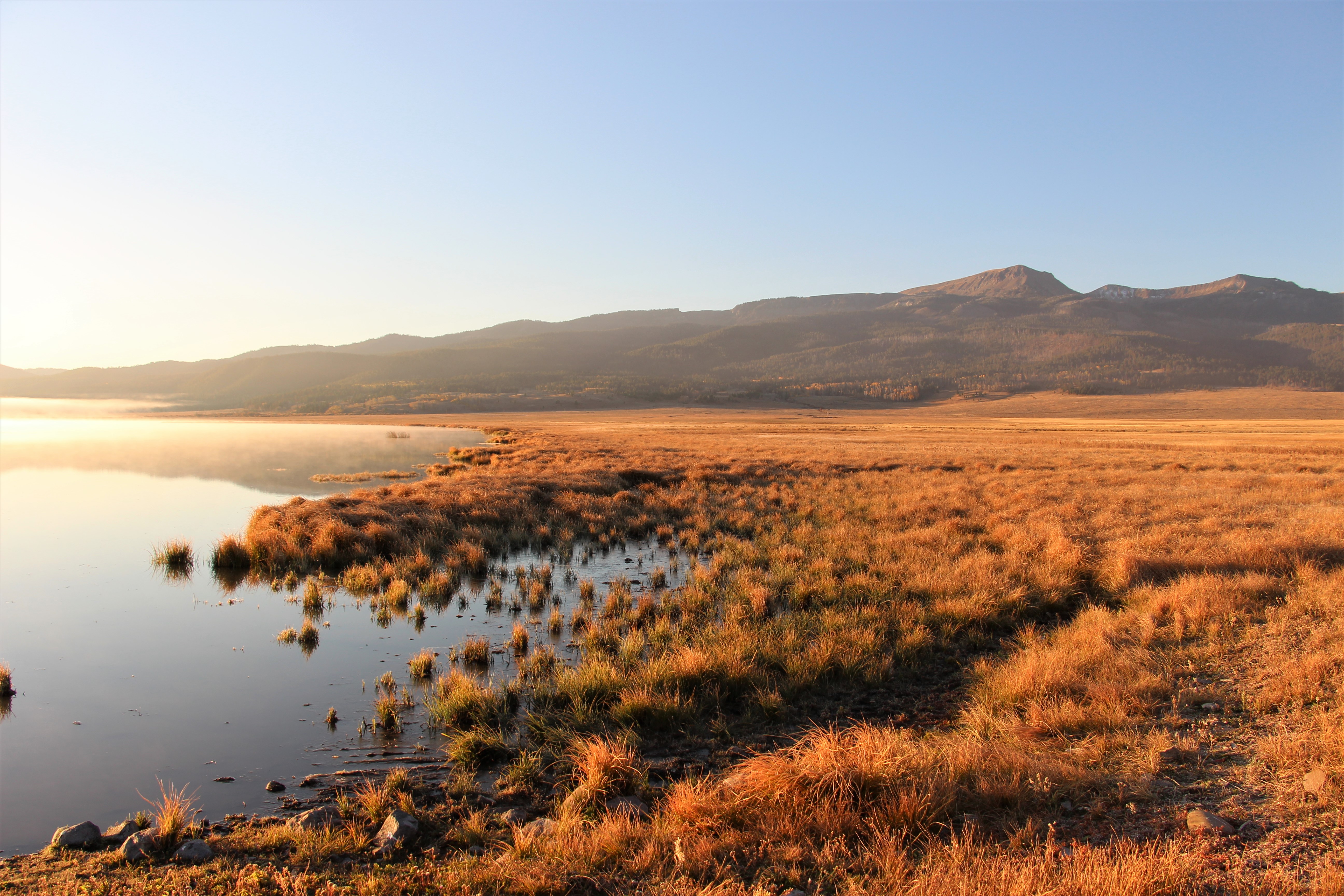 Steam rising from Lower Red Rock Lake after sunrise with Baldy Mountain in the background in the wilderness at Red Rock Lakes National Wildlife Refuge. Photo by Cortez Rohr/USFWS.