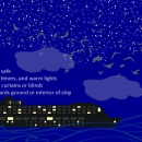 Graphic of offshore vessel at night with text about how to help minimize the threat of light pollution to birds