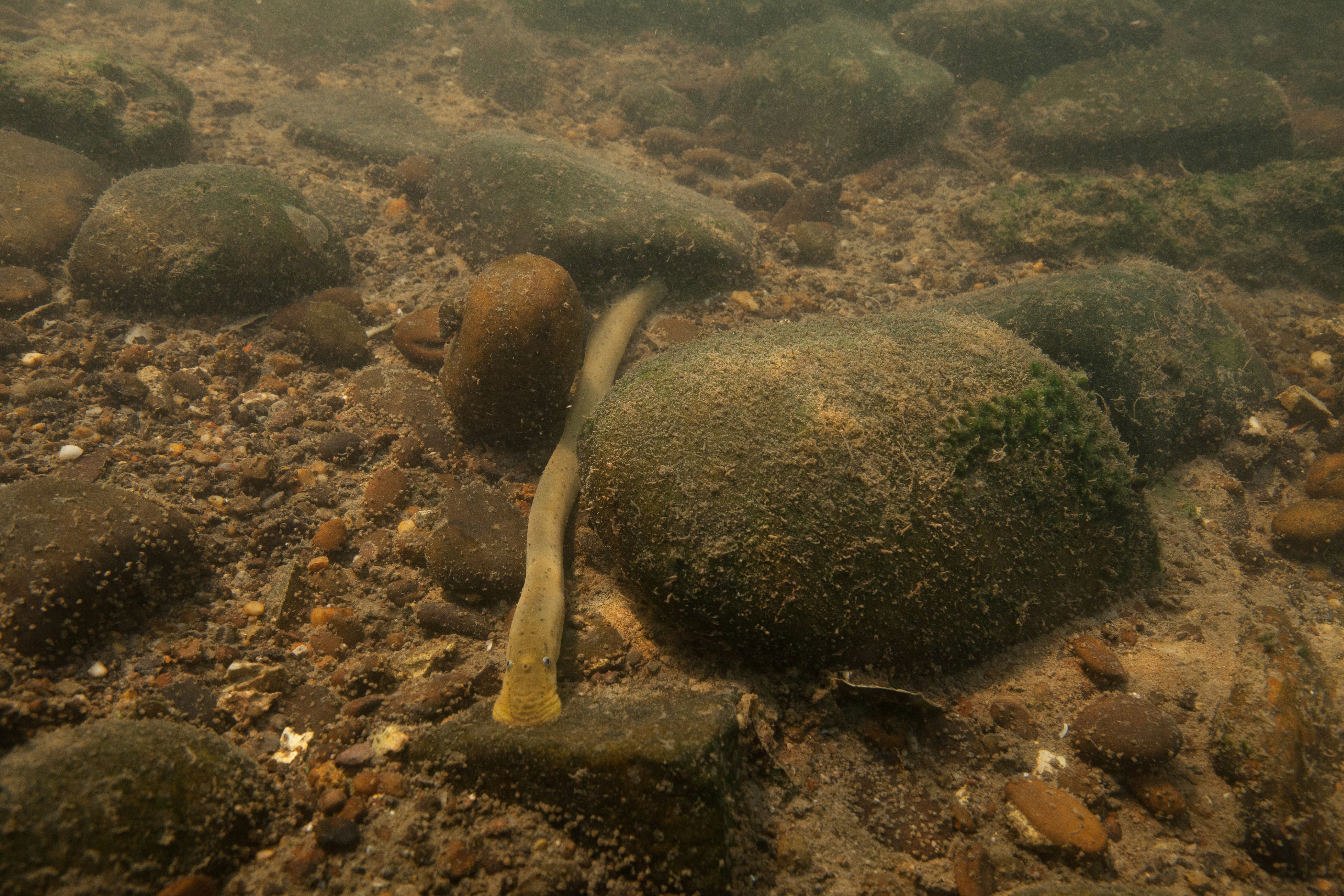 Ohio lamprey attaches to a rock in the Allegheny river.