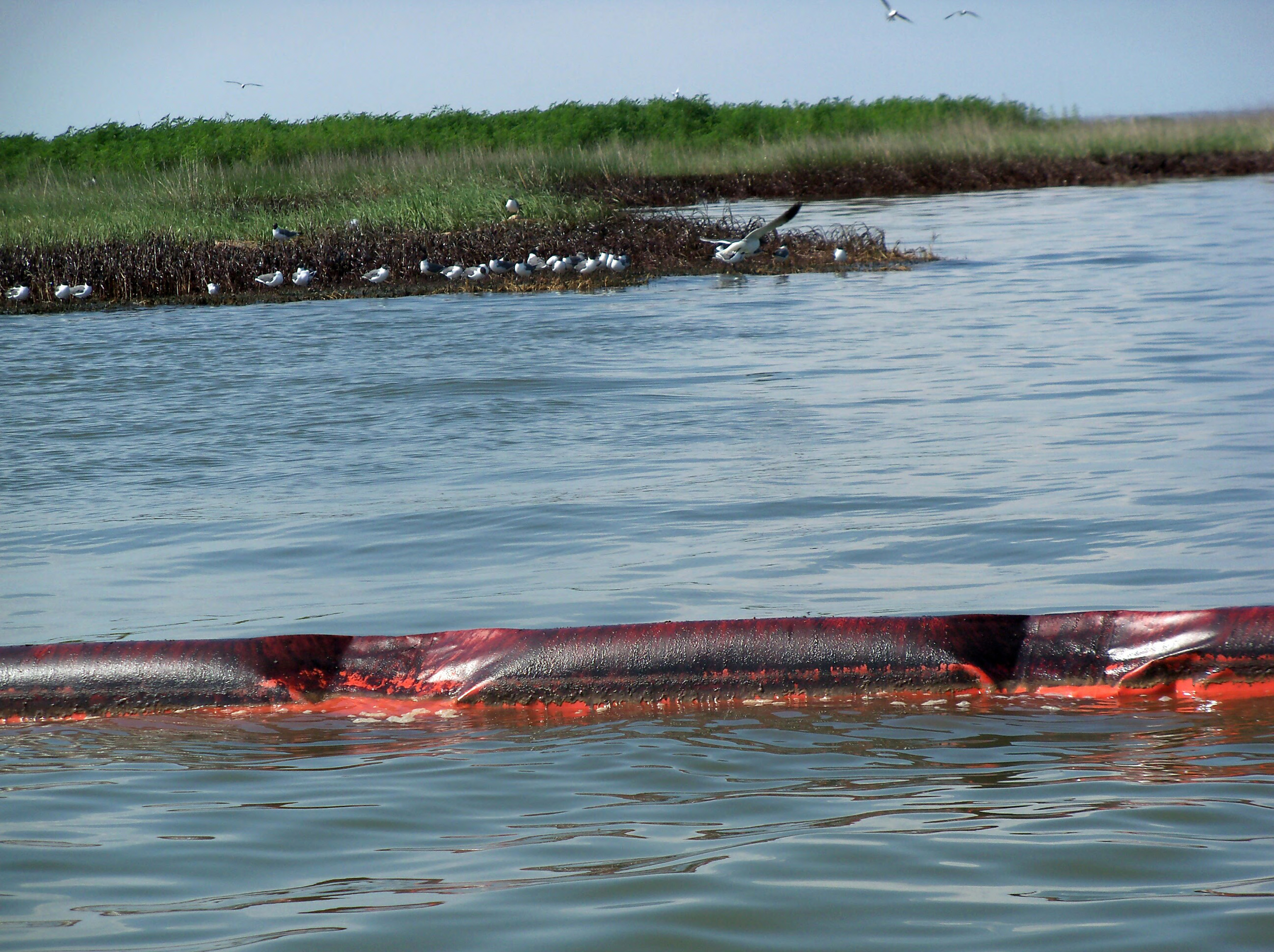 An oil boom, used to contain the oil spill along the Gulf Coast, is shown.