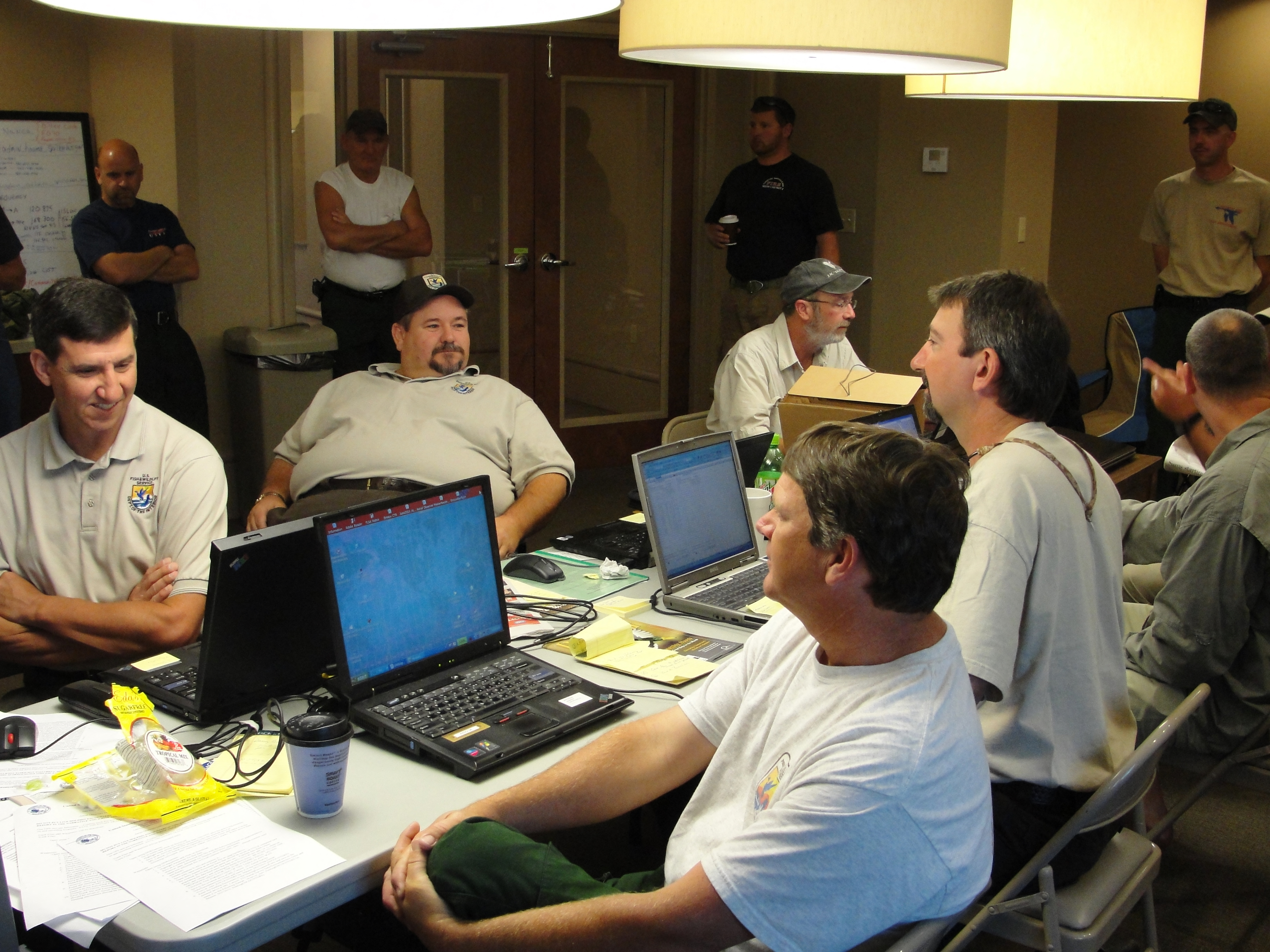 "July 2010 - New Orleans. Workers from U.S. Fish and Wildlife Service, National Park Service and other agencies attend the 0630 briefing at the Helibase at Lakefront Airport in New Orleans. Photo by Phil Kloer, USFWS"