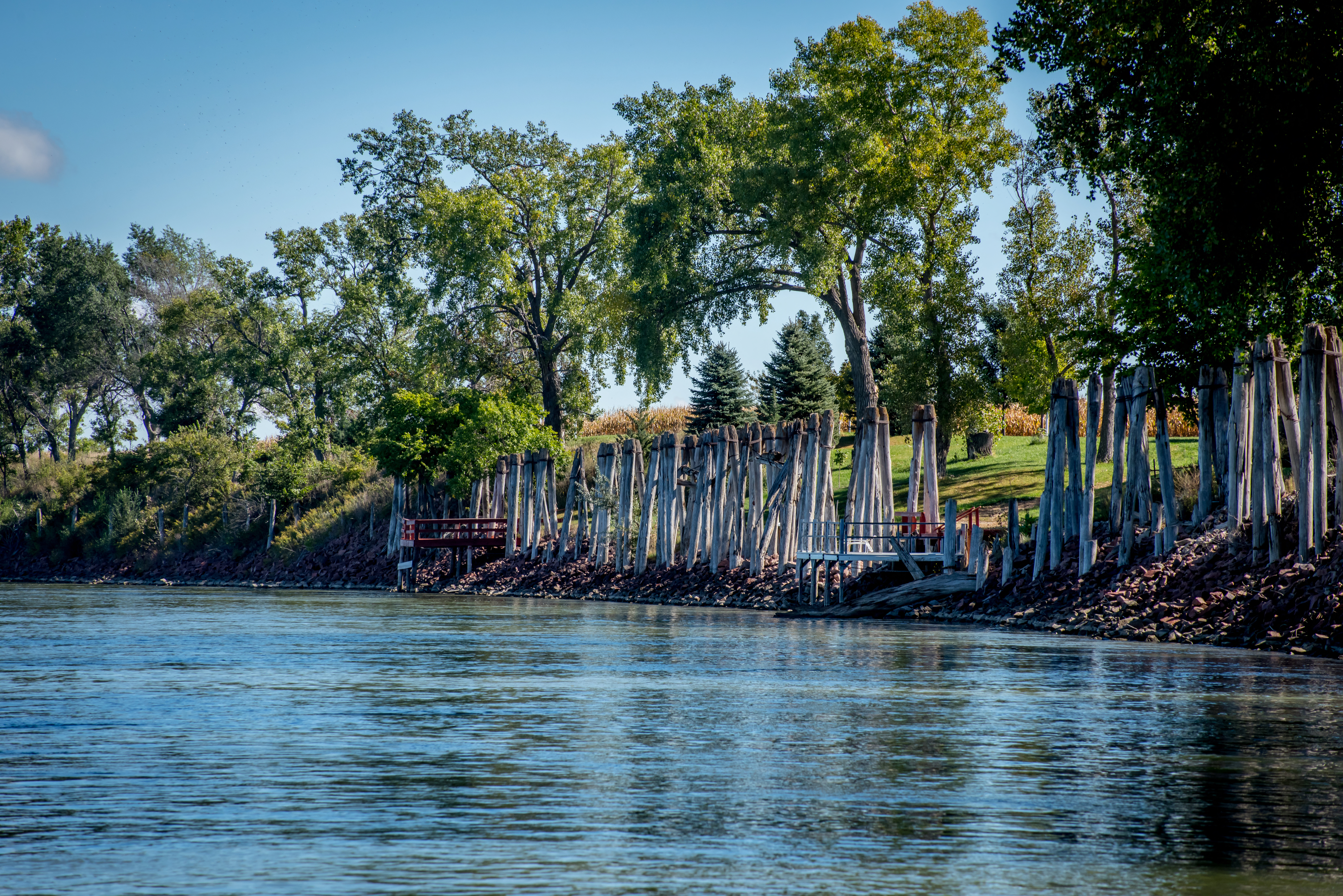 Old wooden pilings along Missouri River near Yankton, South Dakota