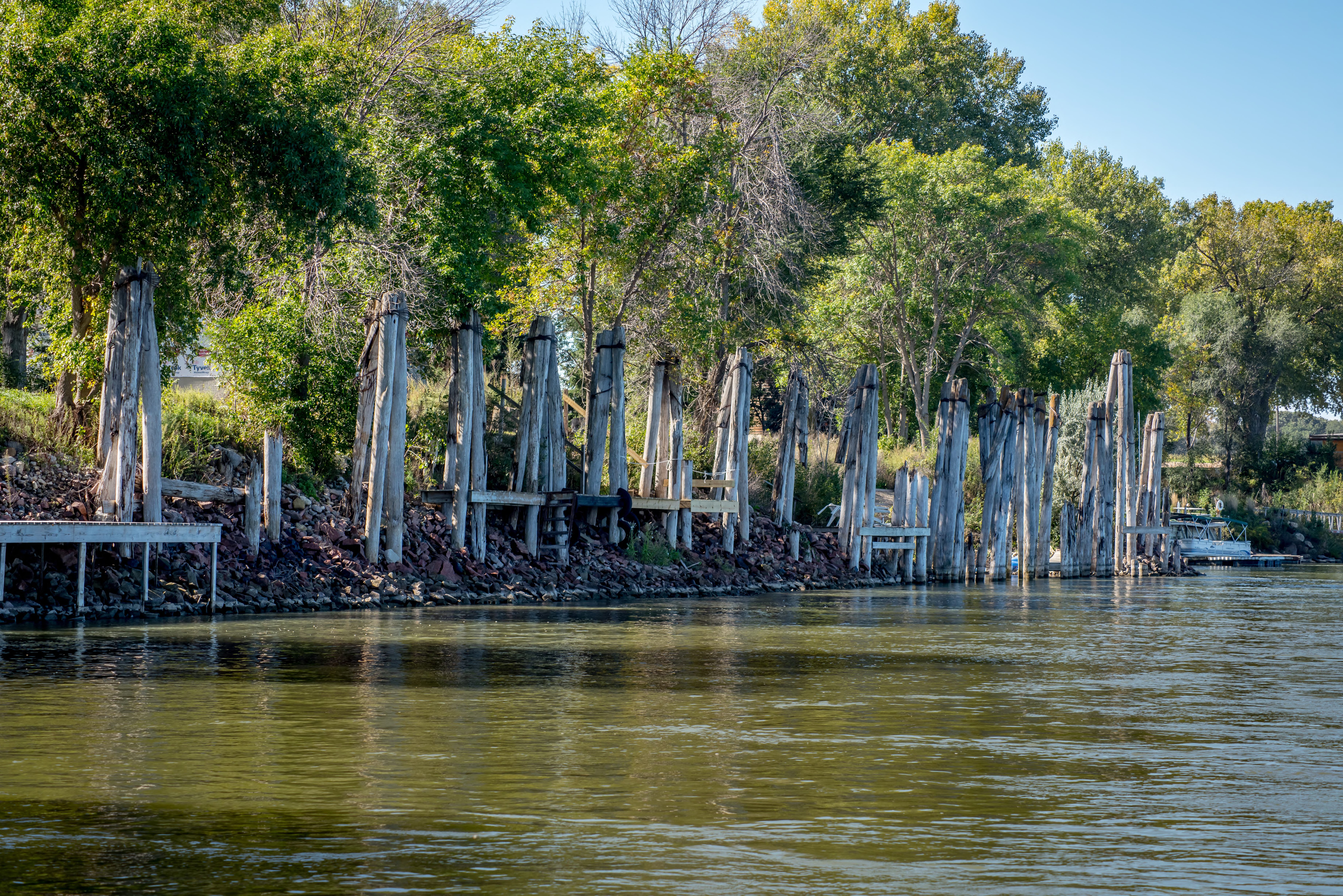 Old wooden pilings along Missouri River near Yankton, South Dakota