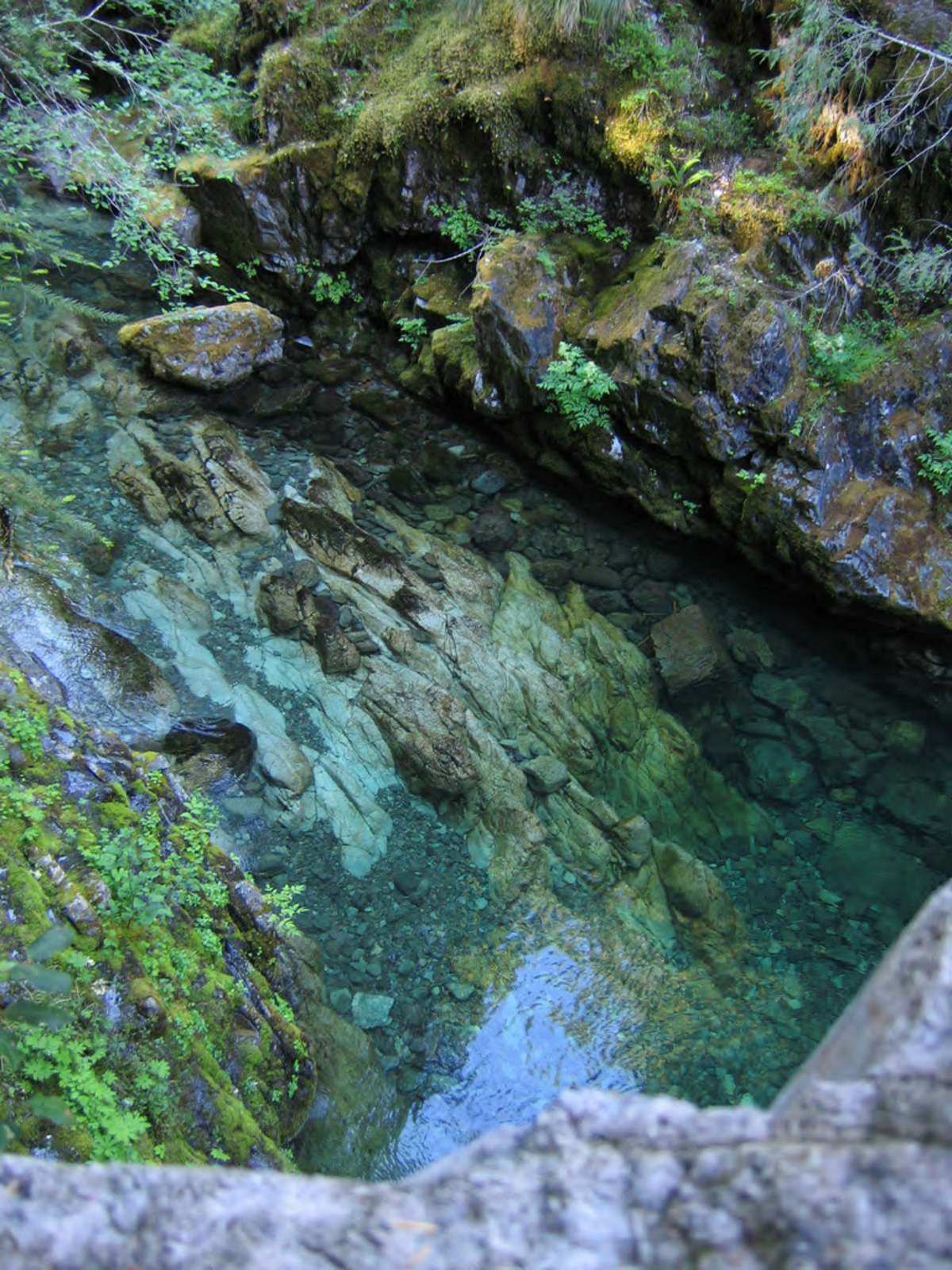 image of Opal Creek taken at the Opal Creek Wilderness, Willamette National Forest. The Opal Creek Valley contains 50 waterfalls, five lakes, and 36 miles of hiking trails. It forms the largest intact stand of Old growth forest in the western Cascades and 500-1000 year old trees are common. The most abundant trees are Douglas-fir, Western Red cedar, and Western Hemlock. Image taken from USFWS Pacific Region Flickr page.