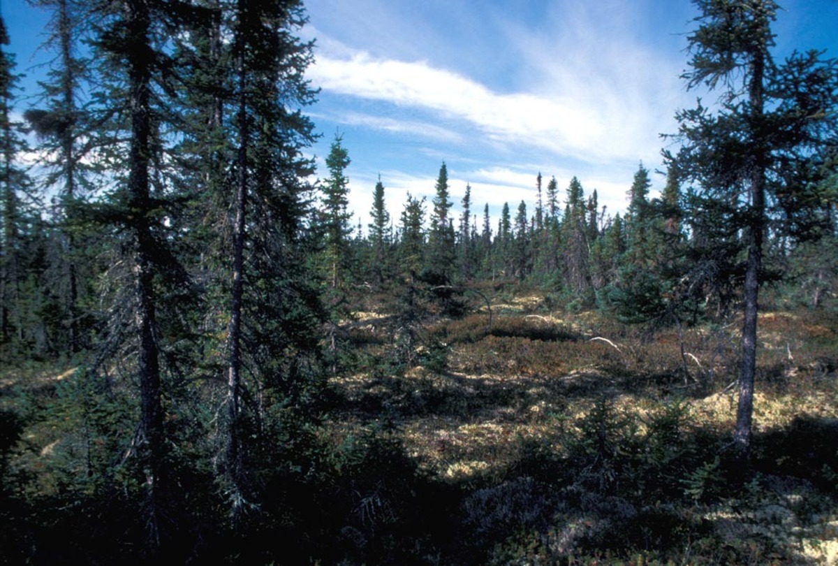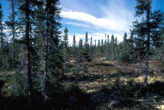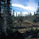 Low growing, open forest primarily of black spruce interspersed with bogs.