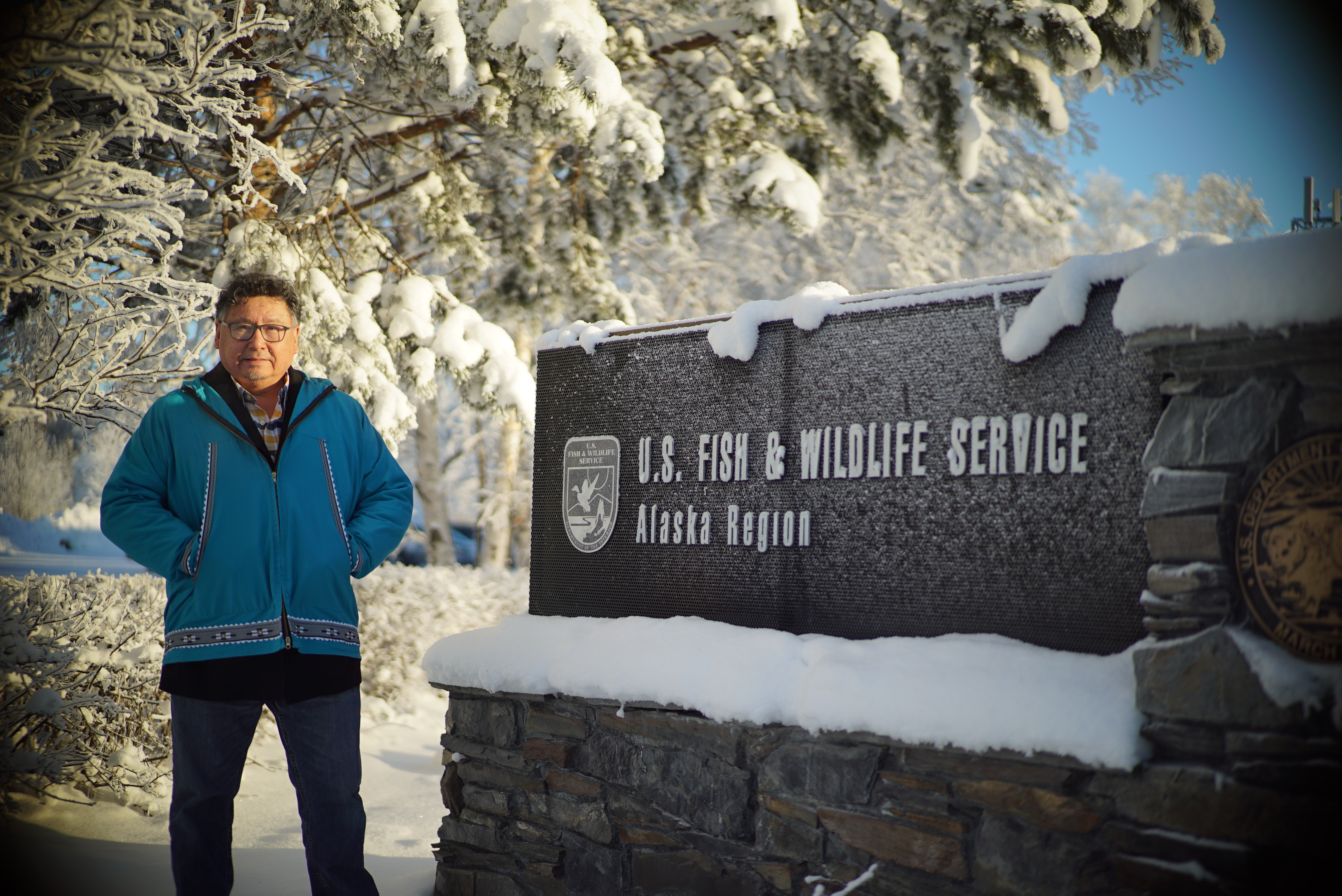 Orville Lind stands by the Service's Alaska Region Headquarters in Anchorage, Alaska.