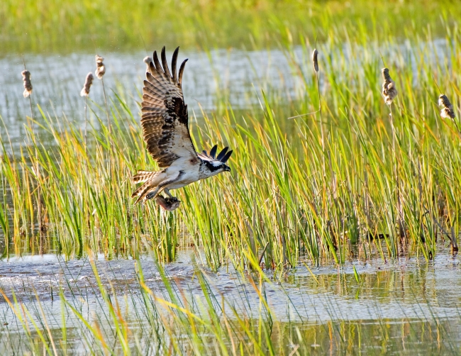 An osprey flies off with a fish at William L. Finley National Wildlife Refuge.
