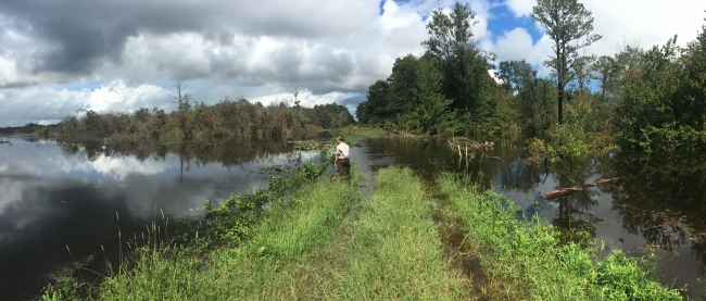 Excessive rain has caused water to flow over the roads at Great Dismal Swamp National Wildlife Refuge.