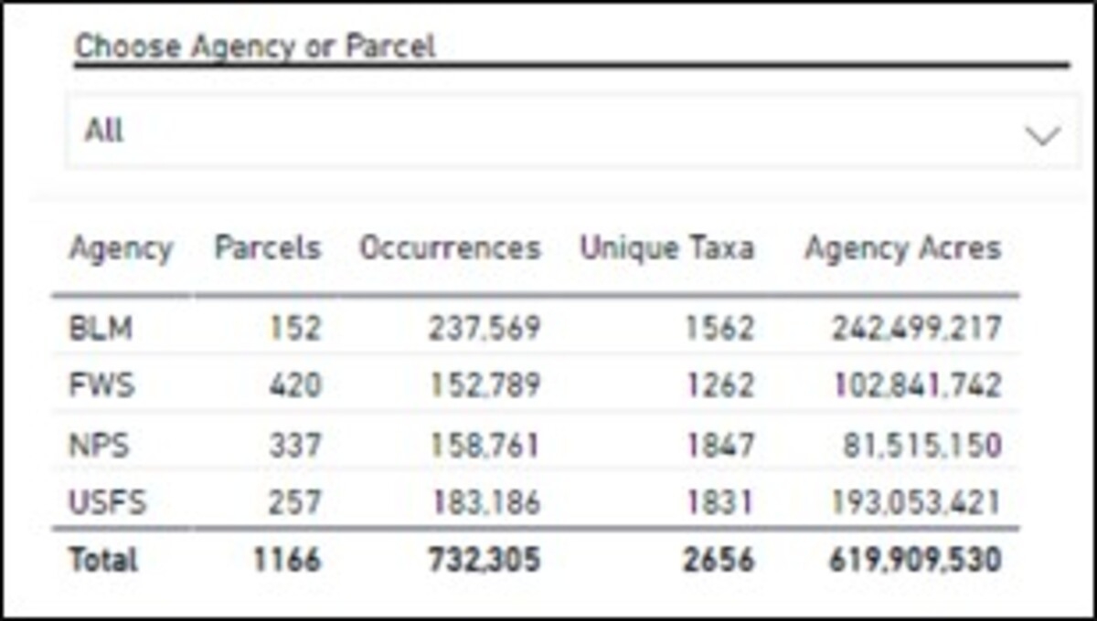 Overview of the U.S. Federal Parcels Summary Table