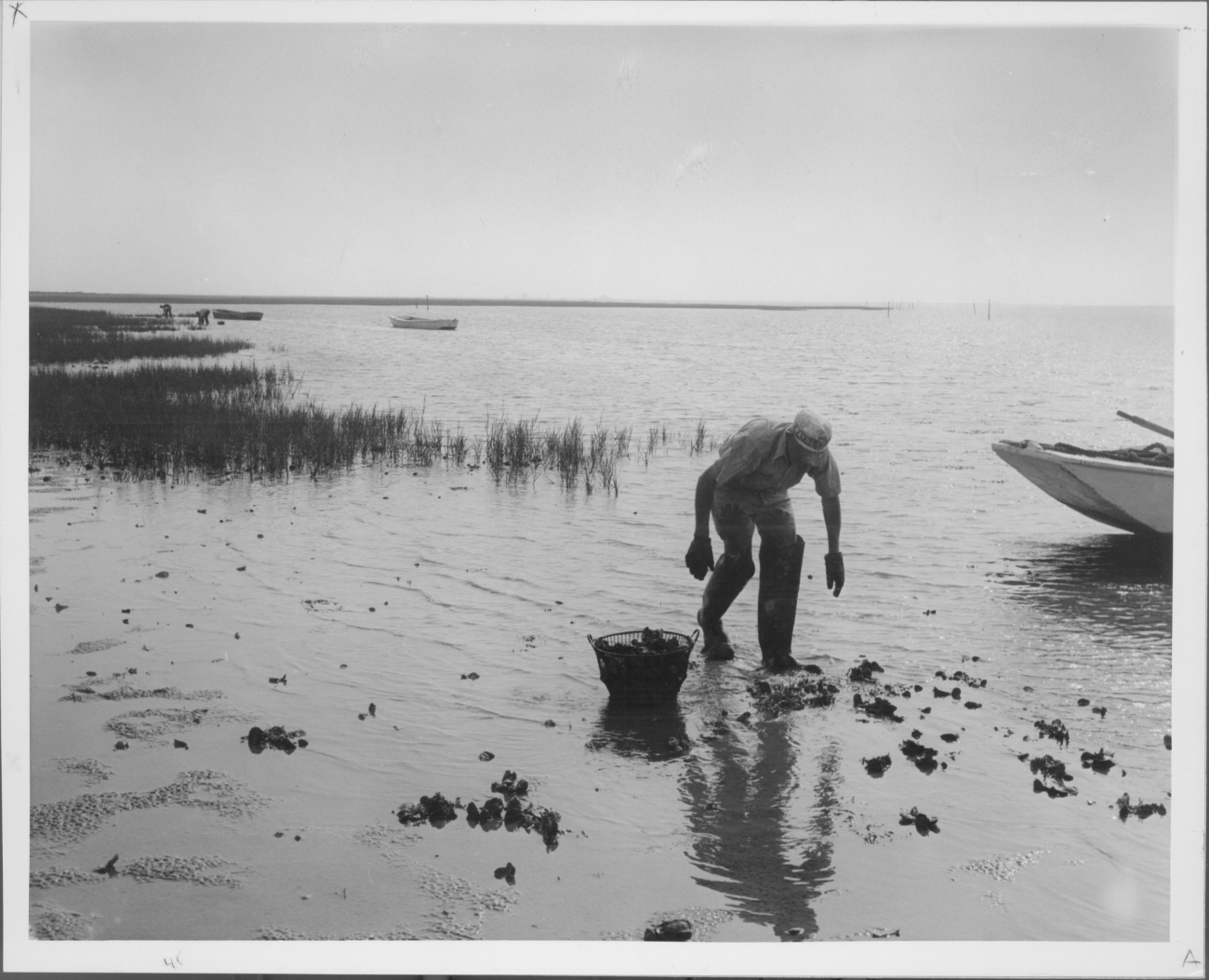 Chincoteague Bay, managed as part of the Chincoteague National Wildlife Refuge, Virginia, is a productive area for Oysters. On the shallow mud flats Oyster fishermen gather small Oysters which are then re-planed in areas more suited to fast adult growth where they fatten for later harvest. Oyster men are permittees and must use conservation practices when working on refuge managed water areas.
