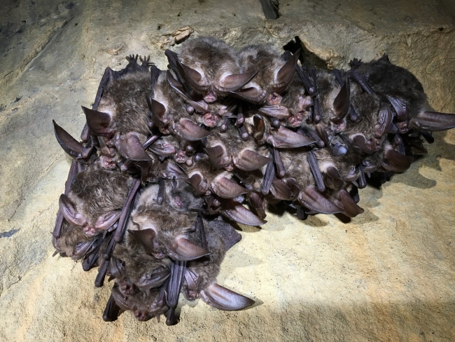 Cluster of hibernating Ozark big-eared bats in Arkansas.