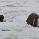 Pacific walrus pair surfacing through ice on the Alaska coast. Image taken from USFWS Alaska Region Flickr page.