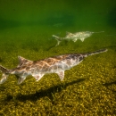 The paddlefish is a species of concern native to the Missouri, Ohio, and Mississippi Rivers. Paddlefish numbers have dropped in recent years due to dam construction, dredging, and over fishing in many areas.