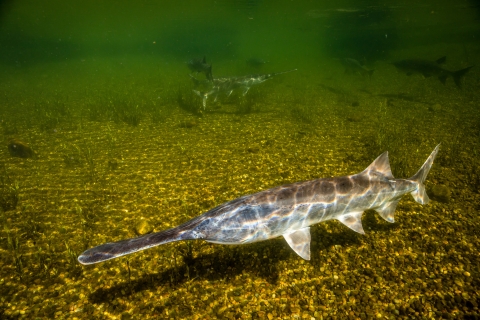 The paddlefish is a species of concern native to the Missouri, Ohio, and Mississippi Rivers. Paddlefish numbers have dropped in recent years due to dam construction, dredging, and over fishing in many areas.