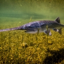 The paddlefish is a species of concern native to the Missouri, Ohio, and Mississippi Rivers. Paddlefish numbers have dropped in recent years due to dam construction, dredging, and over fishing in many areas.