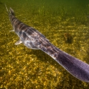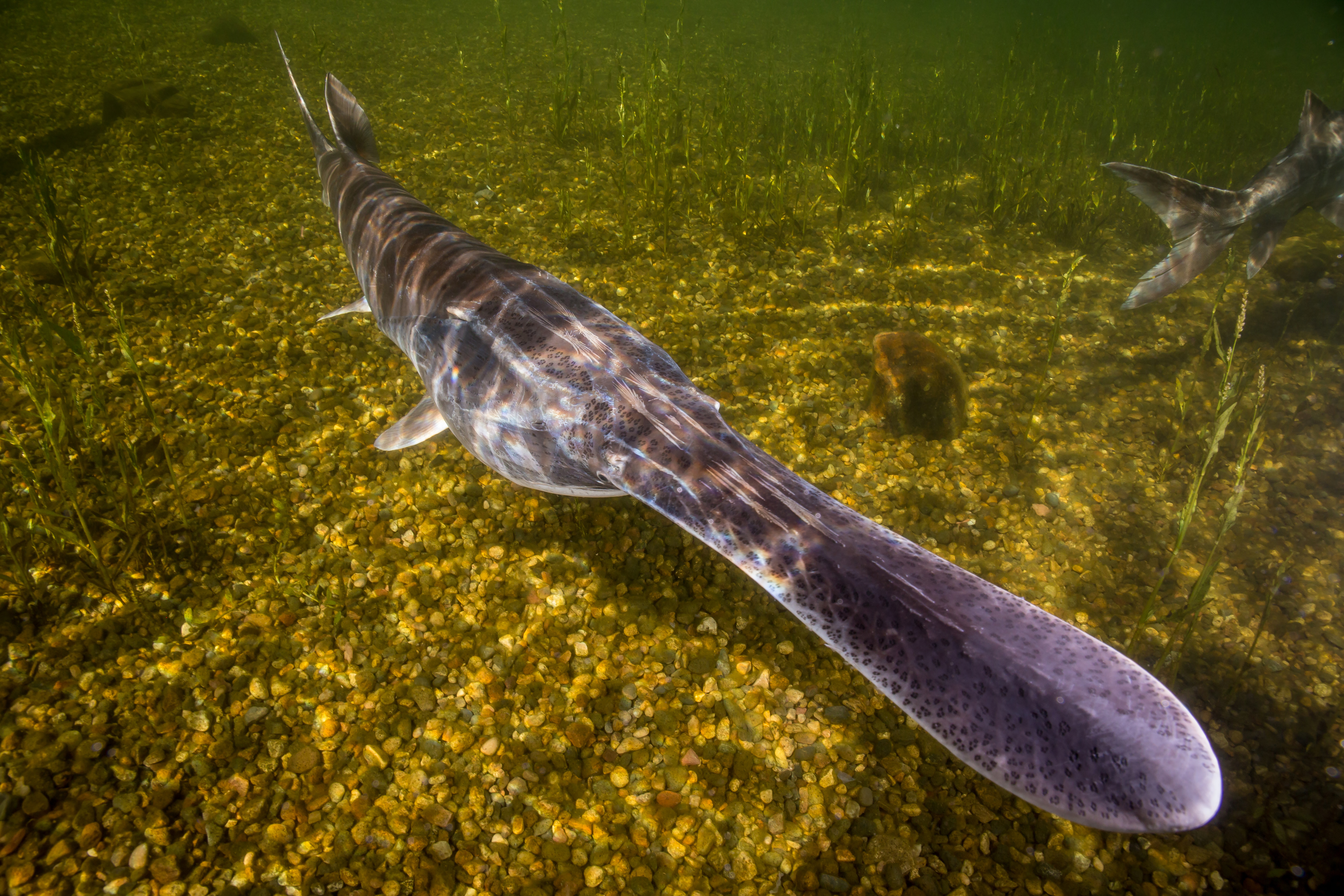 The paddlefish is a species of concern native to the Missouri, Ohio, and Mississippi Rivers. Paddlefish numbers have dropped in recent years due to dam construction, dredging, and over fishing in many areas.