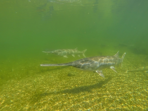 Paddlefish underwater