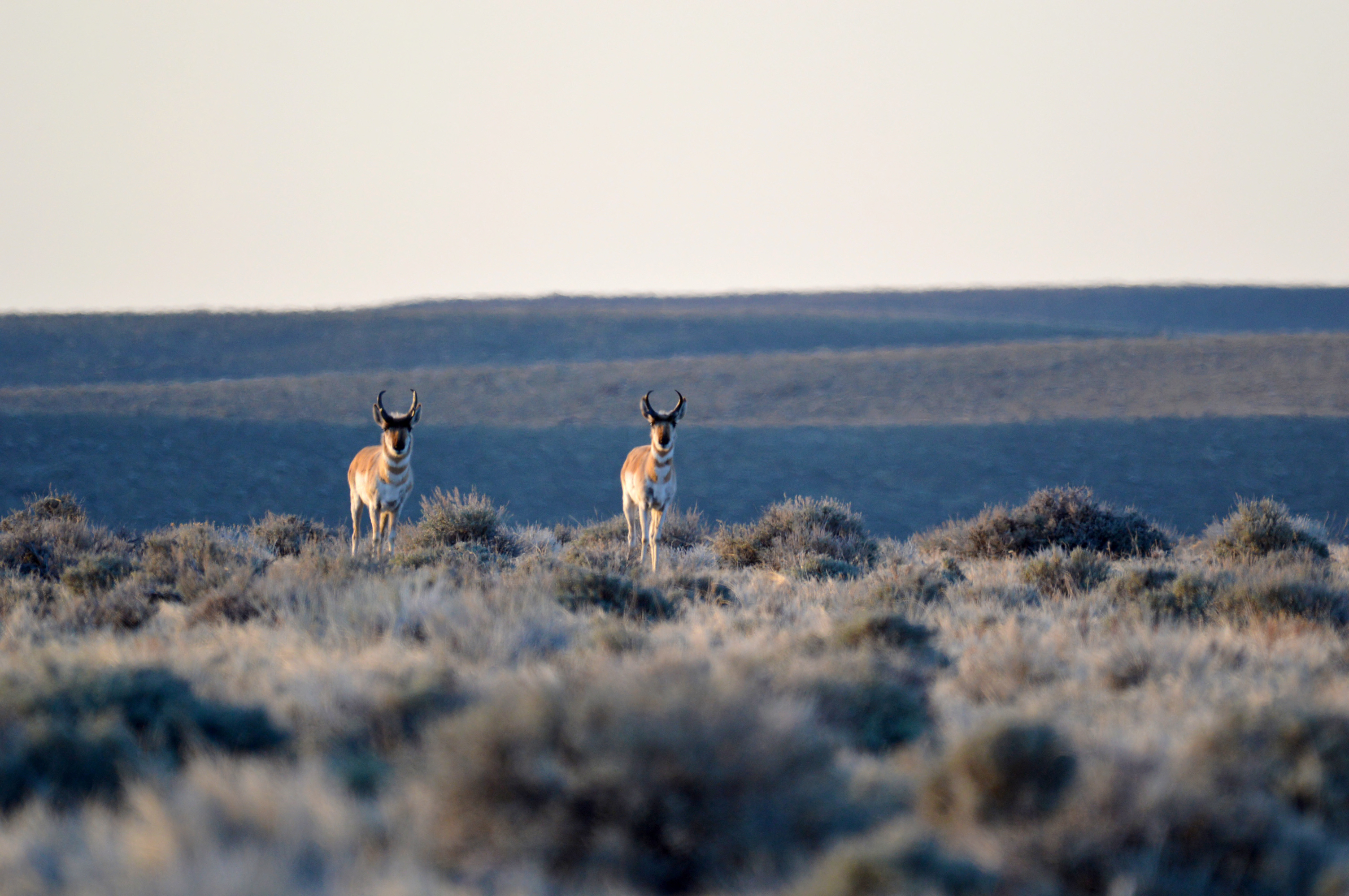 A pair of pronghorn observe the photographer observing them on the Wind River Reservation.