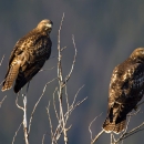 A pair of red-tailed hawks sit together in a tree at Red Rock Lakes National Wildlife Refuge. Photo by James "Newt" Perdue/USFWS Volunteer.