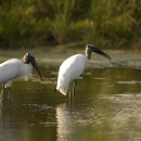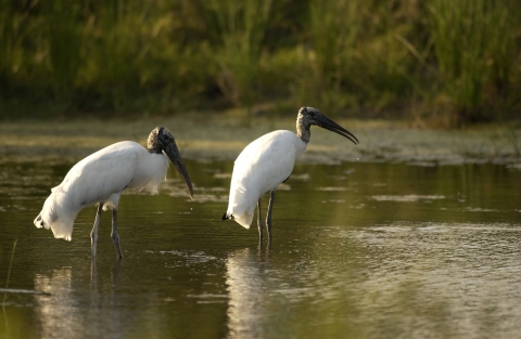 Side view of a pair of Wood storks at Merritt Island National Wildlife Refuge.