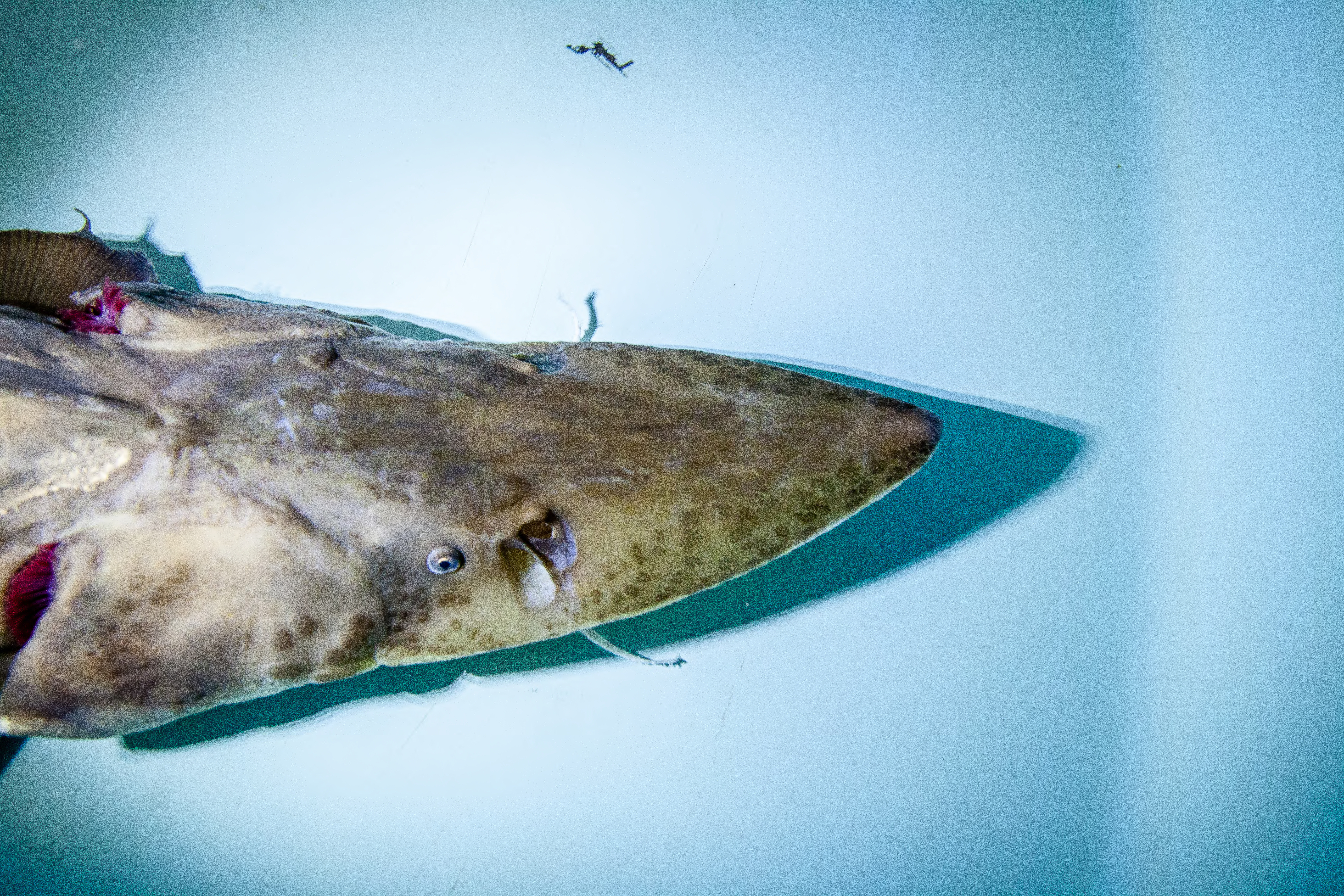Pallid sturgeon have a flattened shovel-shaped snout; a long, slender, and completely armored caudal peduncle (the tapered portion of the body which terminates at the tail); and lack a spiracle (small openings found on each side of the head) (Forbes and Richardson 1905).