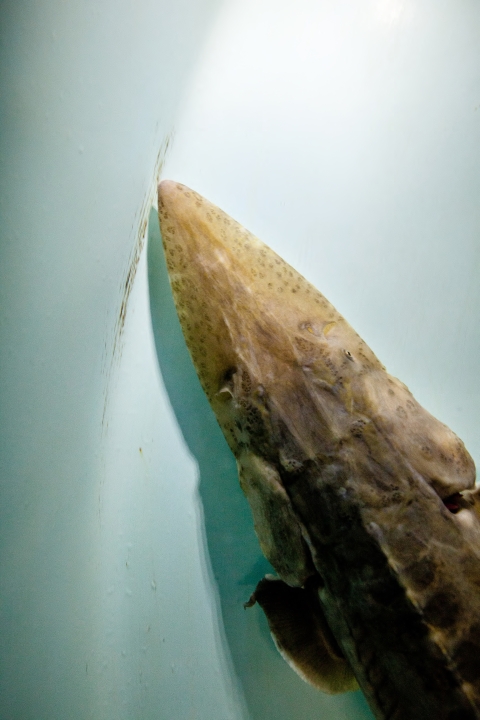 Pallid sturgeon have a flattened shovel-shaped snout; a long, slender, and completely armored caudal peduncle (the tapered portion of the body which terminates at the tail); and lack a spiracle (small openings found on each side of the head) (Forbes and Richardson 1905).