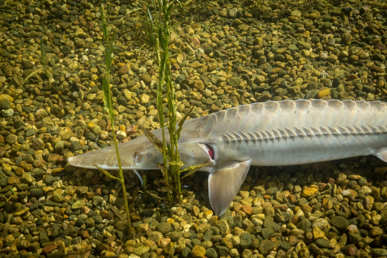Pallid sturgeon at Gavins Point NFH. Endangered and/or threatened species.