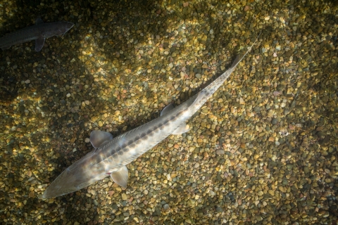 Pallid sturgeon at Gavins Point NFH. Endangered and/or threatened species.