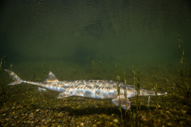 Pallid sturgeon at Gains Point NFH. Endangered and/or threatened species.