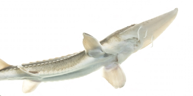 Pallid sturgeon yearling 2 year old. Currently, approximately 5,000 young pallid sturgeons are being reared at Gavins Point NFH.