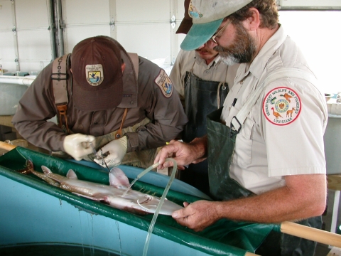 Pallid Sturgeon Biopsy at Nactitoches NFH