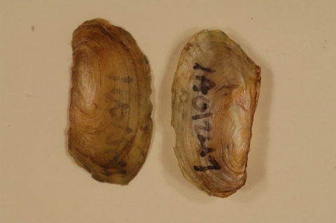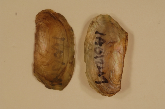 NCTC Freshwater Mussels Teaching Collection: Order: Unionoida Family: Unionidae Genus (ITIS): Utterbackia Species: imbecillis Williams et al.: Use to be: Location Name: Mississippi River at Dubuque, Hwy 20 bridge Location State: IA
