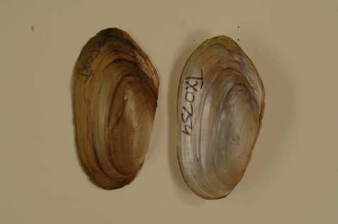 NCTC Freshwater Mussels Teaching Collection: Order: Unionoida Family: Unionidae Genus (ITIS): Utterbackia Species: imbecillis Williams et al.: Use to be: Location Name: Live Oak Creek, Lady Bird Johnson Park, Federicksburg Location State: TX