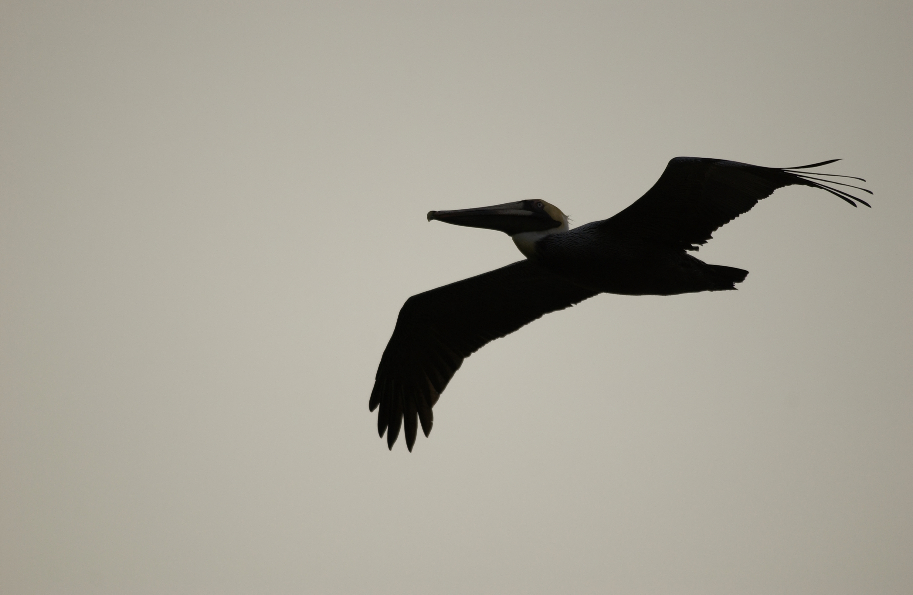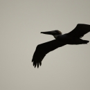 Pelican silhouette in the sky.