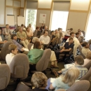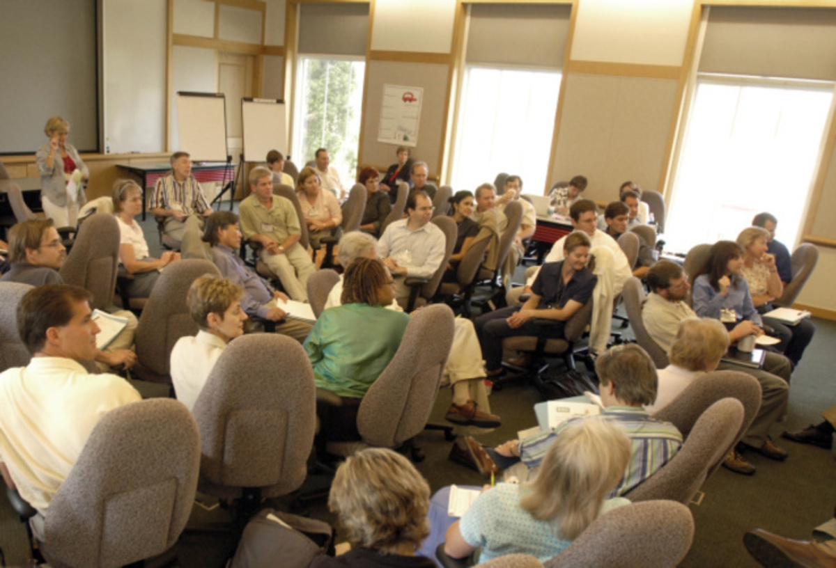 Audience in classroom listening intently to speaker during the FWS/USGS Future Challenges Workshop held at the National Conservation Training Center.