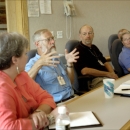 People seated at table participating in group discussion during the Federal Assistance National Meeting held at the National Conservation Training Center.