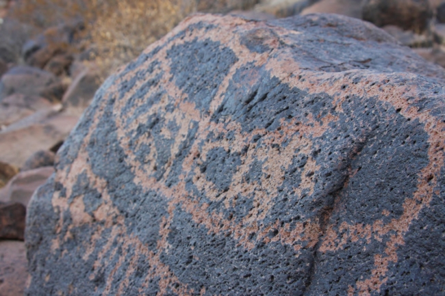 A petroglyph, an image created by removing portions of the rock surface, found on the Cabeza Prieta National Wildlife Refuge. Image taken from USFWS Pacific Southwest Region Flickr page.