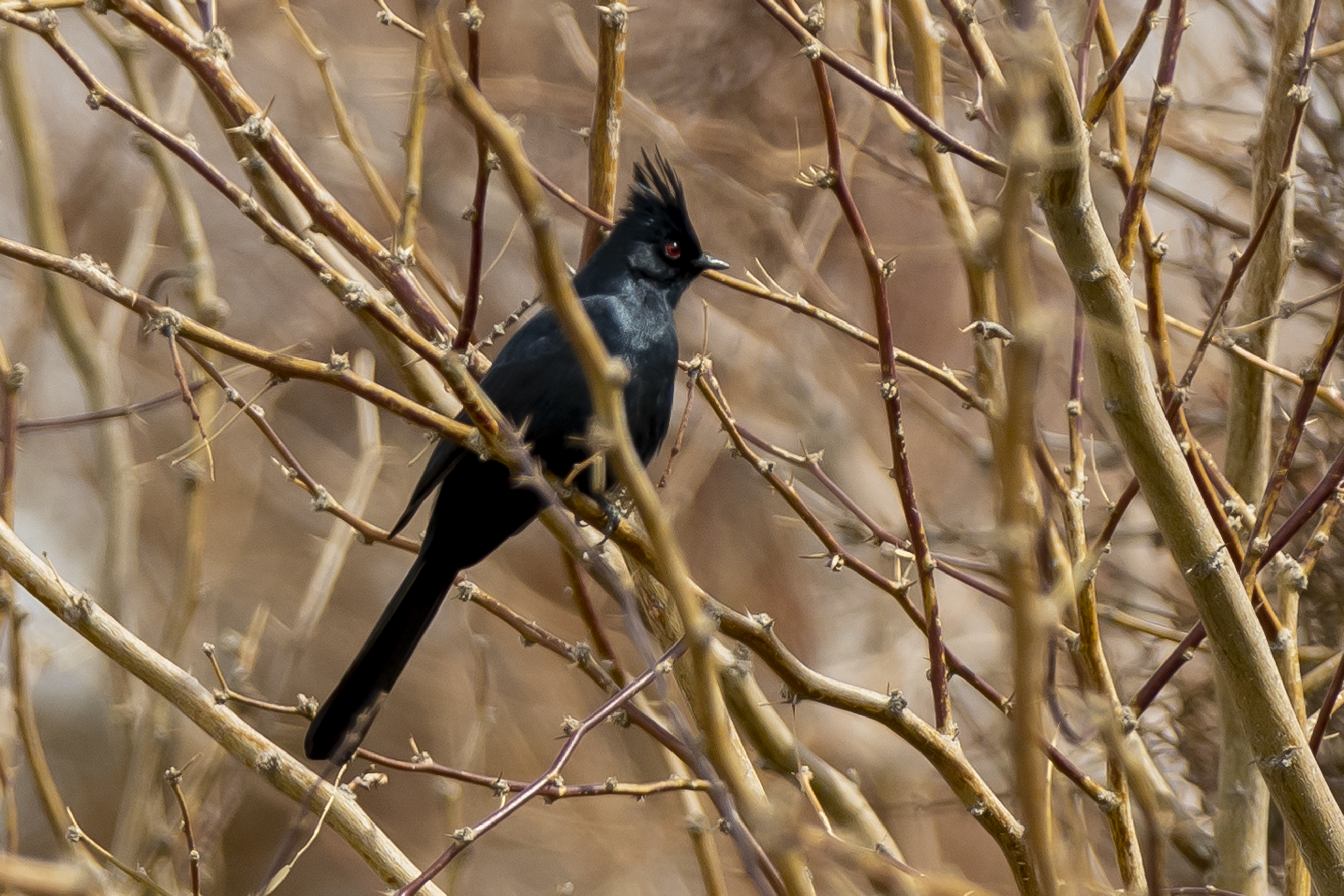 A male Phainopepla rests on a branch in Ash Meadows National Wildlife Refuge. Credit: Jake Sisco/USFWS