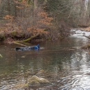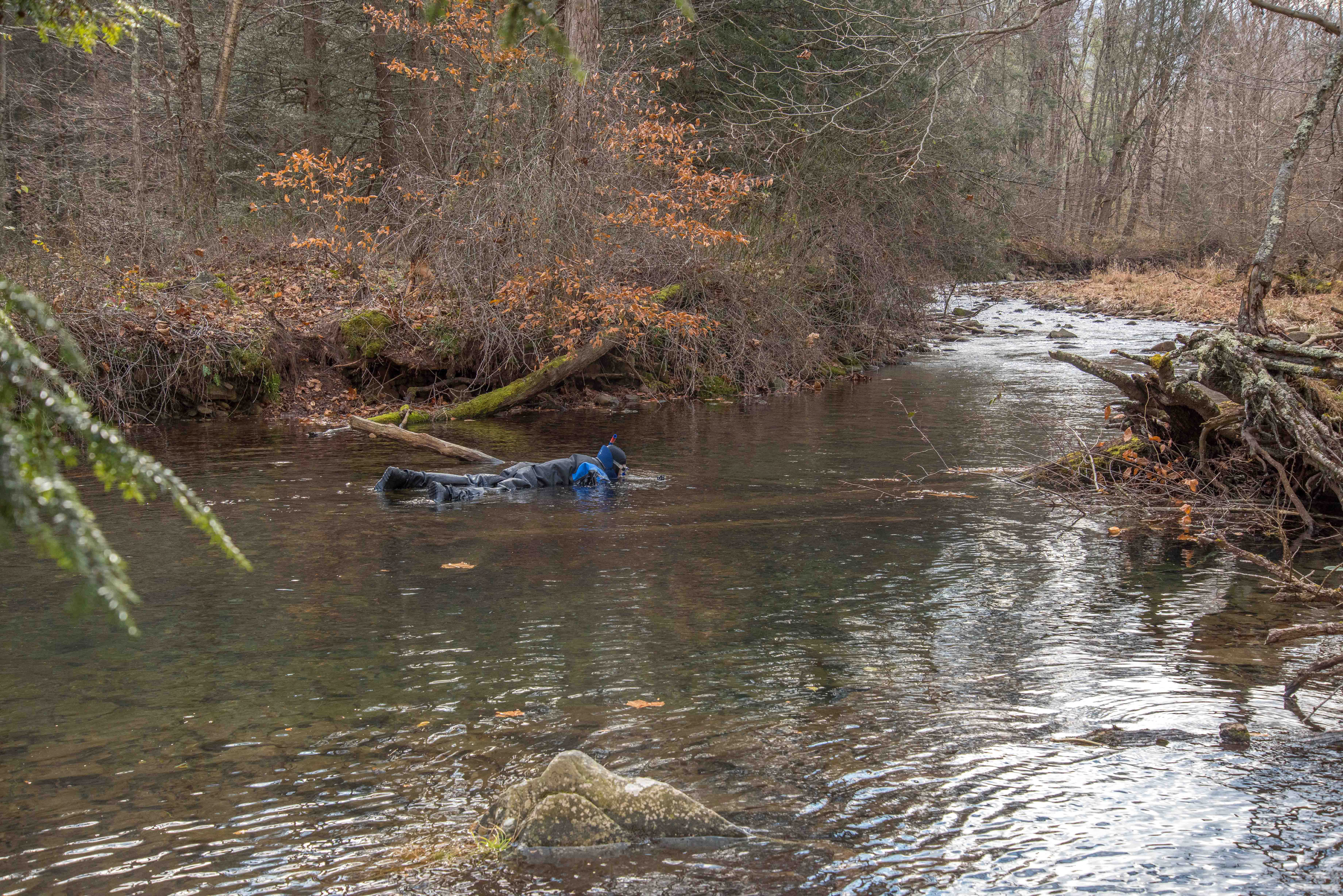 Photographer taking pictures of brook trout in Seneca Creek