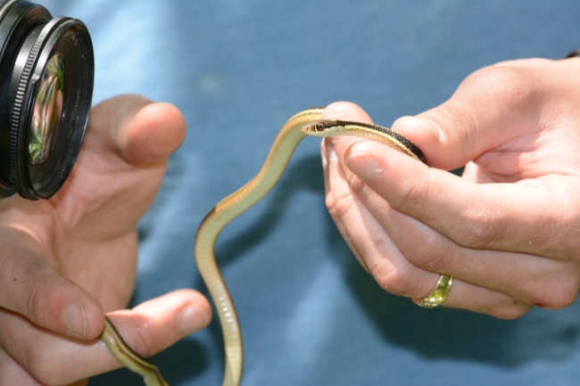Photographing a Ribbon Snake at Muscatatuck National Wildlife Refuge.