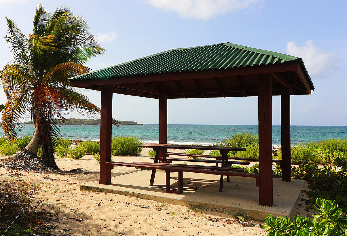 Picnic gazebo with table on the beach at Vieques National Wildlife Refuge